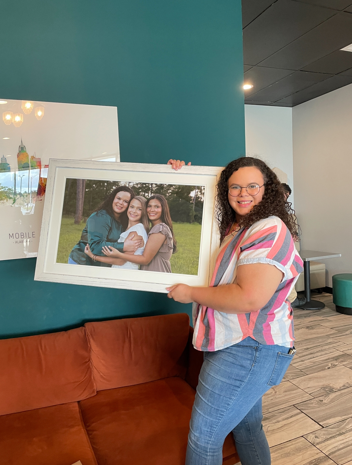My sisters and I booked a session to surprise our mom with an updated portrait of us. Tabitha made us feel so comfortable during our portrait session. She was such a big help when it came to matching our color scheme with a location, finding the perfect frame, and helping us come up with poses. And I love how our portrait turned out!